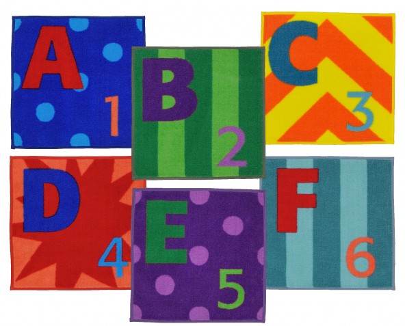 Create individual sitting areas with Letters & Numbers sitting squares. This set of twenty-six, 16" x 16" carpet squares combines bright bold colors with the alphabet and numbers and can be arranged in a variety of ways for organizational, circle time, or other recreational activities. Non-skid backing keeps the squares safely in place, and they can be washed with soap and water to remove soil and stains. Squares can be stored in a reusable, carrying case.