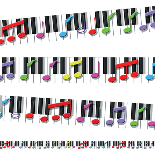 Get students' day off on the right note with these colorful musical notes on a bright keyboard background. Package contains twelve 2 1/4" x 39" strips, totaling 39 feet of colorful border.