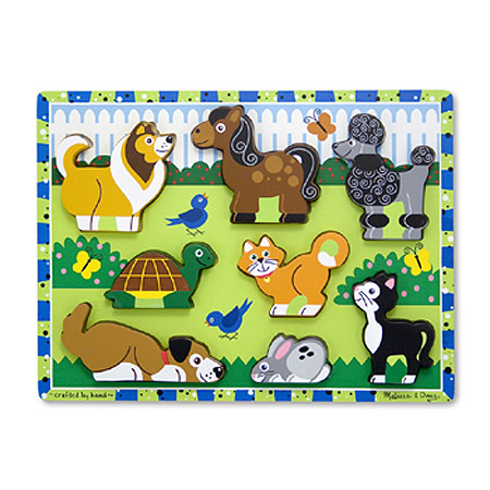 Features Solid wood construction, four individual puzzles, and hand painted graphics.