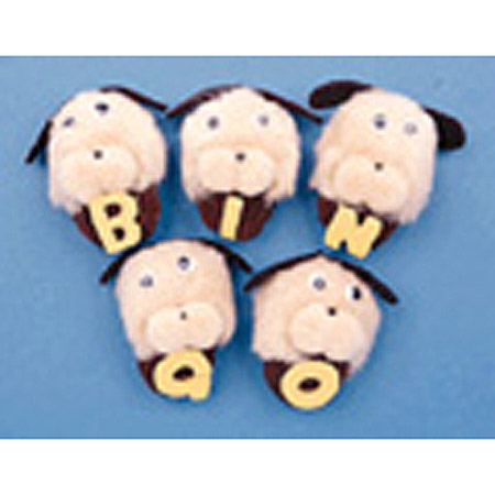 5-Character Mitt Set, Bingo Dogs Attention levels rise, young minds open when you animate your fingers with Monkey Mitt Characters. When it?s time for stories or readiness activities, characters cling by Velcro to the furry Monkey Mitt (WZ-200 or WZ-201) to help teach counting, colors, shapes, holidays, and more! Rhymes and songs, included with Character Set, stimulate language development and dramatic play.
