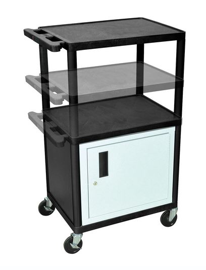 The Multiple Height AV Cart has shelves and legs made from high density polyethylene structural foam molded plastic. Features:
