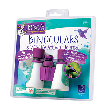 Nancy B's Science Club™ Binoculars and Wildlife Activity Journal™ Experience science with Nancy Balter! Nobody knows science like Nancy. Her brand-new line of scientific tools and real-life journaling activities provide hands-on science experiences that get kids comfortable and excited about science, giving them the confidence to pursue science further in school and in life. Scientific experiences designed for kids ages 8—11 Binoculars and Wildlife Activity Journal™ includes binoculars with built-in compass and twenty-page Nature Activity Journal with animal, bird, and tree observation activities plus ecosystem challenges, story prompts, and more. (WILDLIFE ACTIVITY JOURNAL) |
