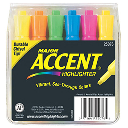 MAJOR ACCENT HIGHLIGHTER CHISEL TIP 6/PACK