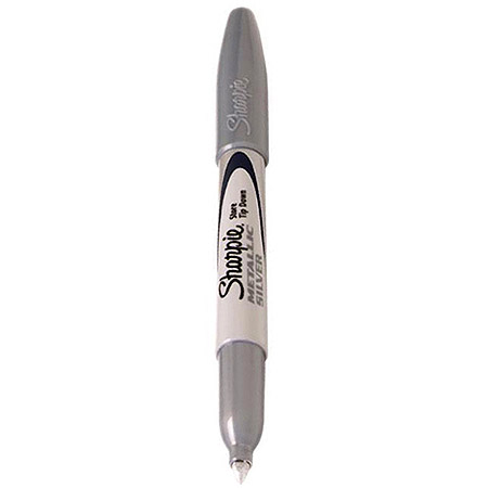 Sharpie Metallic Silver Permanent Marker Fast drying, water-resistant ink Durable point writes on almost any surface AP Certified nontoxic Stunning opaque metallic silver ink is ideal for marking on dark or light surfaces. Durable 1.0mm fine point will not fray. Quick-drying, fade and water-resistant ink.