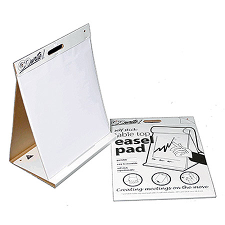 These easel pads are the perfect size to set on a table or a desk at any meeting. The easel cover folds down easily to become the base of the easel allowing it to stand on its own. Jot down discussion points and ideas and stick each sheet to the wall to display. Convenient carrying handle. Removes cleanly without leaving residue behind. Recyclable. 25 Sheets.