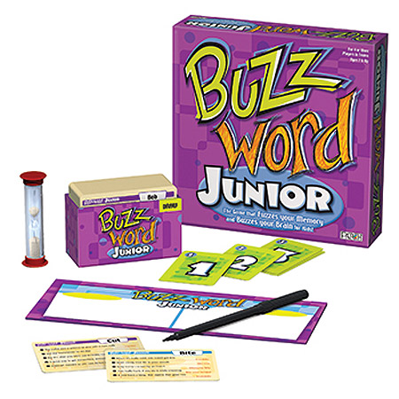 Buzzword ® Junior is a game designed with younger players in mind. Just like in the award-winning Buzzword game, you and your teammates have 45 seconds to solve a set of clues, and all the answers contain the Buzzword. Let's say the Buzzword is 'set' and the clue is 'Three words to start a race.' Your team shouts 'Ready, Set, Go,' and the race for the most points is on. With clues for all ages, Buzzword Junior is the perfect family game For 4 or More Players in Teams |