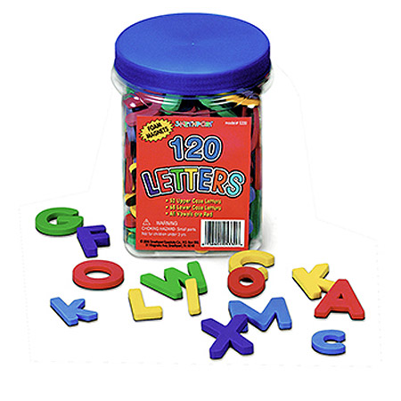 A total of 120 letters will help kids practice their spelling and build their word skills. The set includes 2 of each uppercase and lowercase letter with extras of the most used letters. These multicolored letters are 1¾" tall. For convenience, all the vowels are red to make them easy to spot.