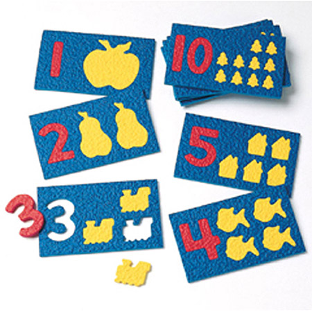 An essential math puzzle! Familiar object puzzle pieces teach the 'meaning" of numbers 1-10. Each washable, durable Lauri Crepe Rubber puzzle frame is 5 3/4" long. 10 individual puzzles in a storage box.