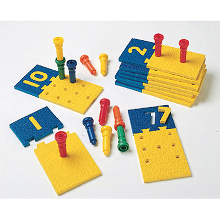 This big set provides progressive challenges as children gain math skills. Self-correcting Lauri Crepe Rubber number puzzles can be used alone or combined with pegs for addition, subtraction, and multiplication. Includes 10 Number Boards (3 3/4" x 7 3/4")
