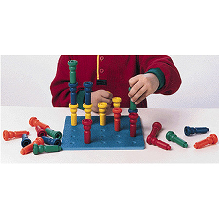Tall stacking pegs are easy to grasp and place. Plastic pegs are 2 5/8" tall and come in 5 colors. 50 Pack includes 50 pegs. Board shown not included.
