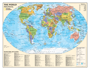 Introducing a new series of National Geographic maps designed specifically for kids. Our new graded-series of maps are the first to address the unique needs of K-12 students as they advance their understanding of our world. Unlike other classroom poster maps, ours utilize the Winkel-Triple projection, which provides the best combination of size, shape, and distance giving students the best visual representation of the Earth's surface. This solves the effect seen on other maps where Greenland appears larger than South America. Our Political Series, grades 4-12, includes an up-to-date world map with an increased level of detail and more information for students and teachers. |