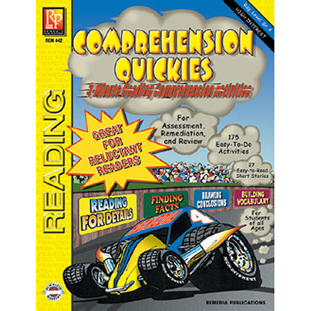 Reluctant readers of all ages and those reading below grade level are sure to have fun while they improve their reading skills with Comprehension Quickies! Very short, easy-to-read paragraphs are followed by comprehension activities that require students to pay attention to details, understand the content, know word definitions, draw conclusions, write complete-sentence answers, and more. These quick, non-threatening reading activities are terrific for: students of all ages, students with short attention spans, students who have difficulty reading longer passages, students reading below grade level, anxious and reluctant readers, ESL students, Inclusion, daily enrichment and review. |