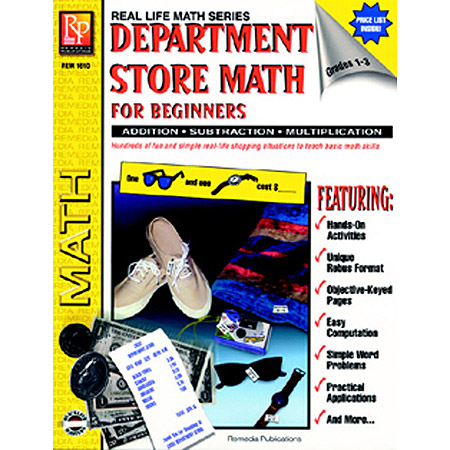 Reinforce your basic math program with our Real-Life Math Book! This fun and effective book teaches simple addition, subtraction, and multiplication through the use of real-life situations. Students will have a great time as they refer to the colorful price list to figure costs when spending money at a department store. From sweaters to sunglasses, the easy-to-read price list generates hundreds of simple rebus and word problems sure to improve any student's math skills.