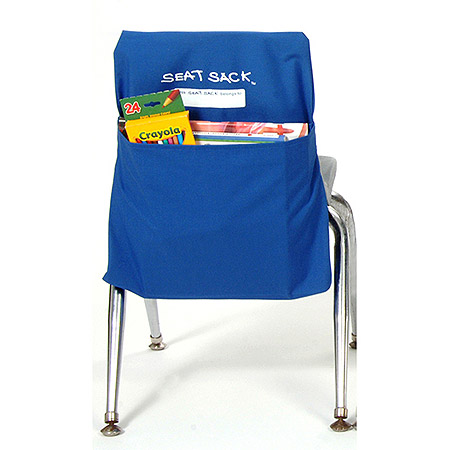 SEAT SACK provides plenty of personal storage for school supplies in the pocket that is formed with this chair storage system designed to fit over the back of a Pre K-1 grade classroom chair.