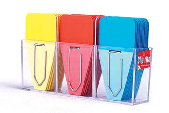 The 2-in-1 instant organizing CLIP-TABS™ help you "clip & tab", write, file and pile in 1 easy step. Clip-Tabs™ hold 1 to 30 sheets together. It's non-smearing, reversible, reusable, removable, recyclable and comes with a lightweight dispenser. |