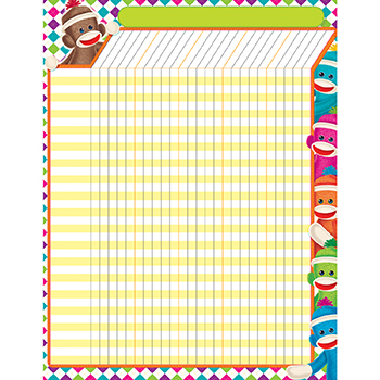 Create student interest with themed charts to track progress and manage tasks. Ideal for schools, homes, and offices too. 17" x 22"; 36 rows, 25 columns. Sturdy and durable. Extra Value on back: tips, reproducibles, and information. Coordinates with Sock Monkeys Collection. |