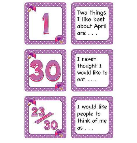 Teachers who buy all 12 sets not only have calendar days for the whole year, but also have dozens of writing ideas! 36 per pack. |
