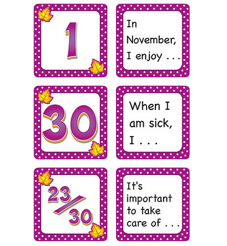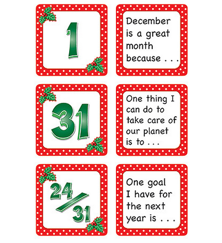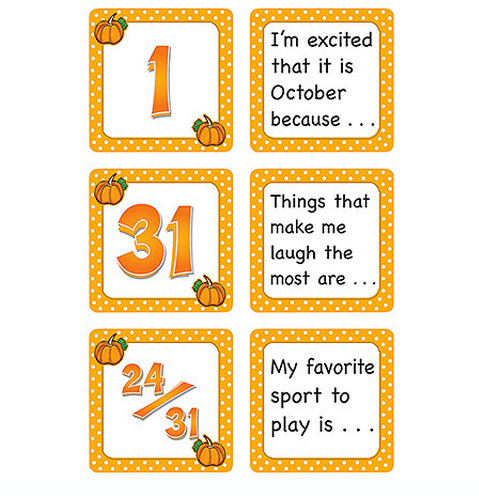 Description A Calendar Day on the front. A Story Starter on the back! Story starters are sentences or phrases that help students get started writing a short story or paragraph. On any given day, a teacher can go to the calendar, turn over the piece for the day, and find a ready-made writing assignment! Monthly sets available: