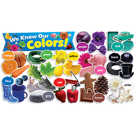 49 pieces: - 36 color photos - 12 color labels - "We Know Our Colors!" banner - Activity guide |