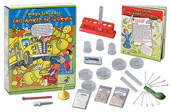 Ms Frizzle and her students take Young Scientists on a wild ride into the world of germs with these thrilling experiments. Young Scientists will grow bacteria and fungi, test antibiotics, make a fungus bubble, explore antibiotics, grow mold, wake up fungi, cultivate bacteria in yogurt, use yeast to inflate a balloon, and much, much more! Seatbelts, everyone! Get ready to discover The World of Germs! |