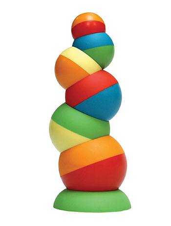 2012 TIA Toy of the Year Finalist 2011 Dr. Toy 10 Best Creative Products Award 2011 Dr. Toy 100 Best Children's Products Award The sleek, modern design of Tobbles caught us staring... We designed them for your kids, though you'll admire Tobbles too! The best playthings look good - and play better. Tobbles is no exception. Looking gorgeous is one thing. Gratifying to hold in your hands is another. The dual-textured surface of each sphere, the pleasant heft to each weighted piece... It gets better. Just wait until you see Tobbles in motion. Physics interplays with design perfection. Creativity, experimentation, and innovative play take on a new spin. And do they ever spin! Six uniquely weighted Tobbles pieces to carefully balance, suitably nest, recklessly spin and tower far above your expectations. For encouraging sensory exploration, hand-eye coordination, fine motor skills, and visual spatial awareness, Tobbles is a dynamic toy with truly endless possibilities. Stack, topple, spin, balance, wobble, tilt, and wiggle. Little hands delight in the never-ending discovery of Tobbles. A design-savvy conversation piece, Tobbles accelerates aptitudes for exploration with hours of abstract fun! Tobbles Stacking Spheres ·Creativity and innovative play take on a new spin ·For sensory exploration, fine motor skills, coordination, visual spatial acuity ·Dynamic play potential - stack, topple, spin, balance, wobble, tilt, wiggle, roll ·Physics interplays with design perfection - Looks good, plays even better ·Dual-color & dual-texture of spheres adds to play enjoyment ·Ideal for busy, curious children & beloved by playful adults ·Six vibrant, weighted pieces for delightful experimentation ·A design-savvy, functional conversation piece ·Includes 6 vibrant, weighted spheres & stacking base ·Highest quality construction ·Fully safety tested |