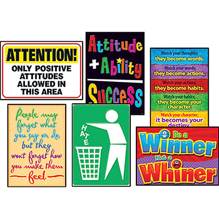 Create themed displays with the most popular ARGUS® Posters in value-priced combo packs. Set includes: Be a winner, not a whiner, People may forget what you say..., Attention! Only positive attitudes..., Attitude + Ability = Success, Trash the hate, and Watch your thoughts... 13 3/8" x 19" each.
