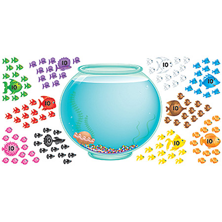 A giant fishbowl and 120 colorful fish are perfect partners for tallying the first 100 days of the school year or introducing math concepts. Fish bowl is 25" high. 121-piece set.