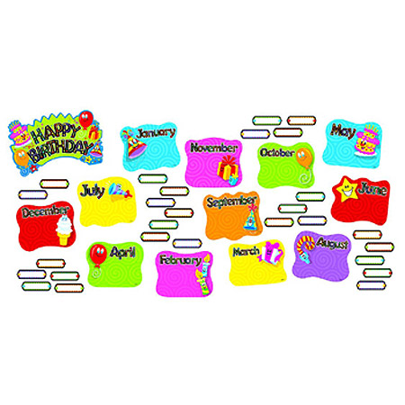 Make every student feel special with this celebratory set. Create a display for each month using 37 student name plates, and then celebrate with a happy birthday header sign and more fun pieces. 44 pieces, up to 11".