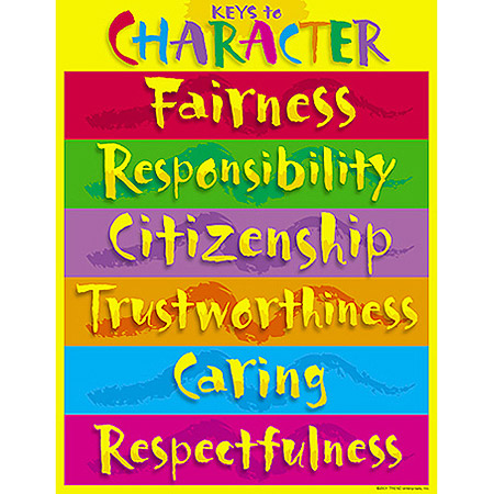 A brightly colored chart that lists each of the character traits in our series: trustworthiness, respectfulness, responsibility, fairness, caring, citizenship. A great stand alone piece or companion to the other Character Education charts. Back of chart features reproducible activities, subject information, and helpful tips. 17" x 22" classroom size.