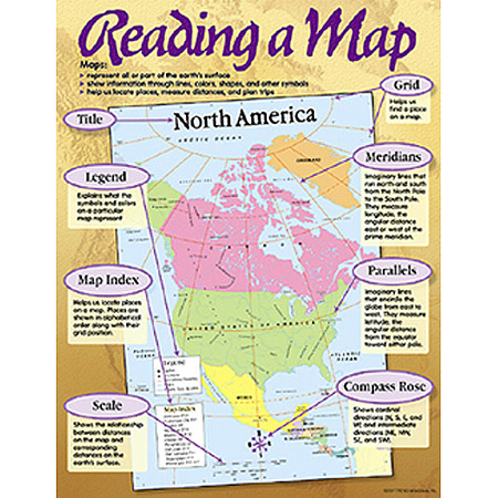 The elements of a map are defined and their uses explained. Back of chart features reproducible activities, subject information, and helpful tips. 17" x 22" classroom size.