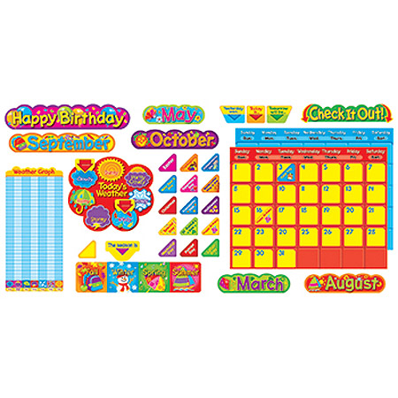 Display these bright calendars in a variety of ways to teach months, days, weeks, time concepts, weather, holidays, cultural events, celebrations, counting, addition, subtraction, graphing, planning, spelling, reading, and more! Includes: two 22" x17" calendars in red and blue, yesterday/today/tomorrow sliding pointers, 33 date markers, 40 holiday and special day markers, 12 month labels, birthday sign, seasons sign with sliding pointer, weather sign with two pointers, and a news sign. 98 pieces.