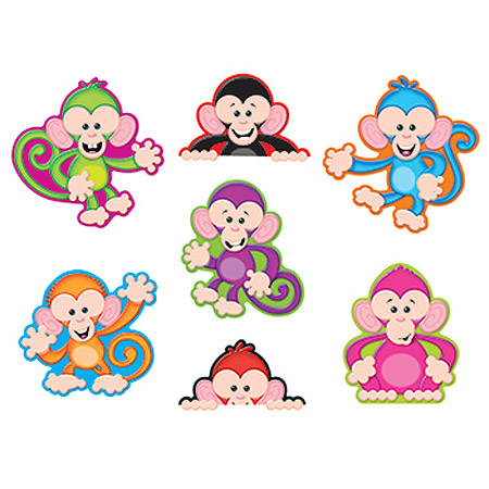 Variety and value for all your teaching needs! Packs feature an array of popular decorative themes for learning activities, displays, and crafts. Designs complement TREND bulletin board sets and coordinated dÉcor. 7 monkeys, 42 pieces total. About 5 1/2" tall.