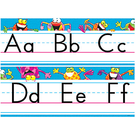 Bring cheer and energy to learning with these friendly frogs. Uppercase and lowercase letters and numbers 0-10 on 10 pieces. Complete line is 6 1/2" x 17'.