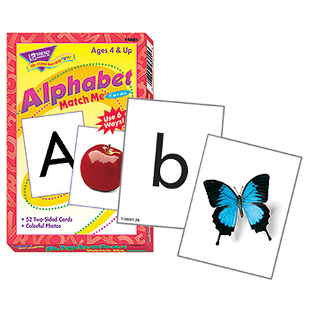 Award-winning Match Me® Cards engage learners' matching, memory, and word/picture recognition skills. Learners practice alphabet skills as they match uppercase and lowercase letters to photograph clues. Set includes six fun and easy-to-follow activities. Ages 4 & up. 52 cards, 3" x 3 7/8".