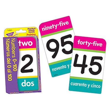 Easy-to-read numbers and number words in English and Spanish. 56 two-sided flash cards feature rounded corners for quick, easy sorting. 3 1/8" x 5 1/4".