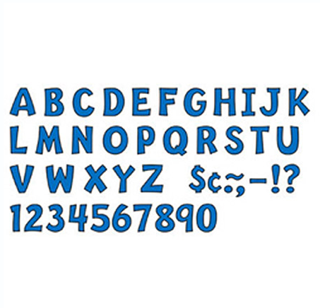 Description Punch out and pin up Ready Letters for attention-getting messages. Set contains: 100 uppercase letters, 20 numerals 0-9, 30 punctuation marks, and 12 Spanish accent marks. 2 inch. Colors: