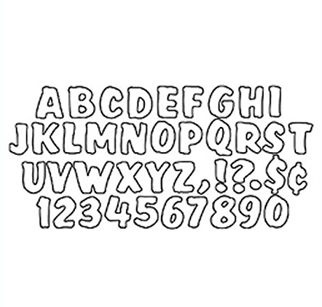 Description Punch out and pin up Ready Letters for attention-getting messages. Set contains: 53 uppercase letters, 10 numerals 0-9, 13 punctuation marks. 4 inch.\ Colors: