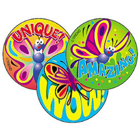 Praise words stickers are great for motivation and celebration of achievements. Scratch 'em and sniff 'em for a burst of fragrance! Acid-free, non-toxic, and safe for use on photos. Stinky Stickers® are popular as rewards, incentives, and collectibles. 60 stickers in three fun designs.