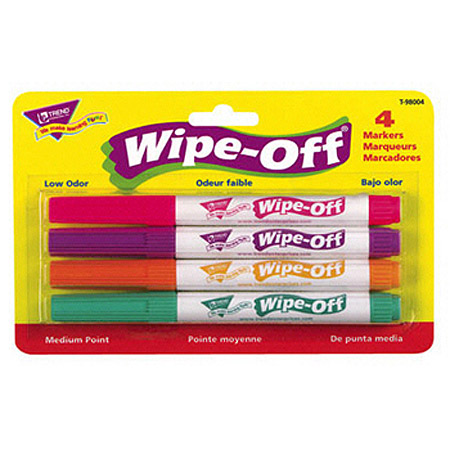 Use on any Wipe-Off® surface to extend learning. New colors and a trilingual format add variety and value. Long-lasting, non-toxic ink wipes clean with a dry tissue. Pack includes purple, pink, orange, and aqua.