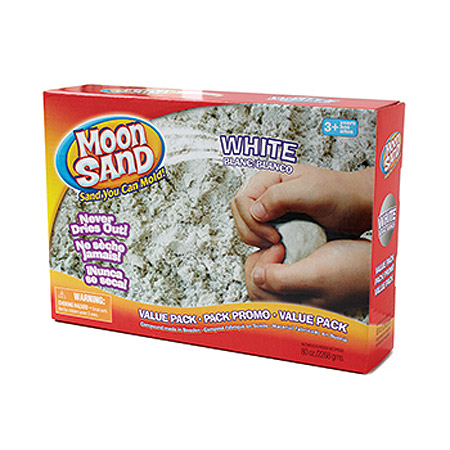 Description Moon Sand Sand simulates and develops children's fine motor and creative playing skills. Moon Sand will bring out every child's creativity and imagination. It's the perfect material for open-ended non-directional play! 5 lbs of White Moon Sand |