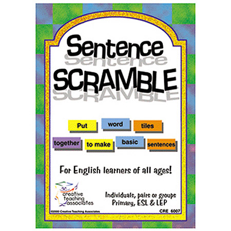 Sentence Scramble is designed to teach the basic structure of simple English sentences. It is great for use with primary and intermediate grade students as well as with international students learning English as a second language. The object of Sentence Scramble is to make as many sentences as possible with a set of word cards. The cards are printed on both sides, color coded, and include nouns, adjectives and articles, verbs, adverbs, prepositions, and pronouns.