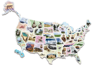 Giant WonderFoam U.S.A. puzzle map is great for learning about historical landmarks and places. Each state contains a historical landmark or feature that pertains only to that particular state. Comes with a teachers activity guide. (MAP) |